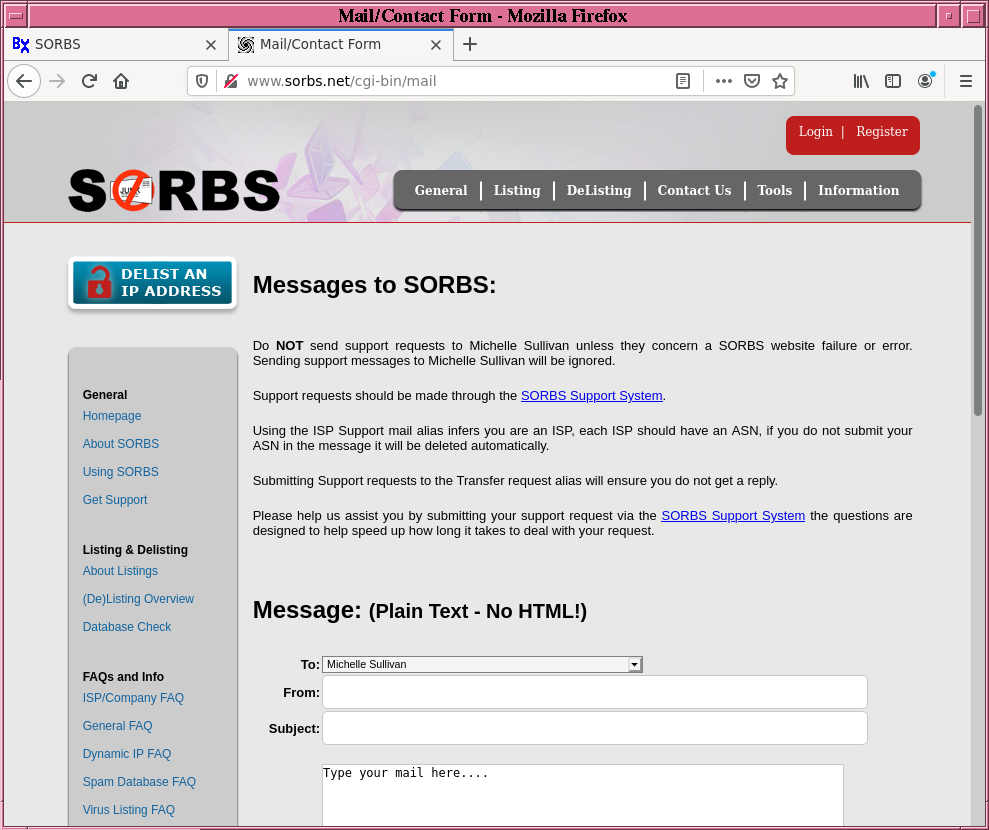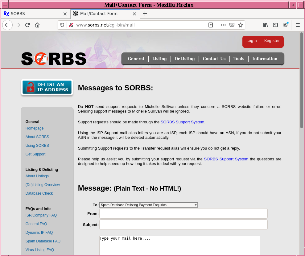SORBS - A bad RBL Black List provider