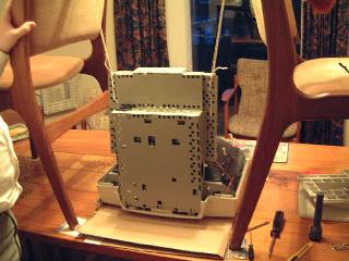 Trivial removal & replacement of sheared screw in computer monitor needed unusual improvised structural support to avoid anything else breaking during repair.